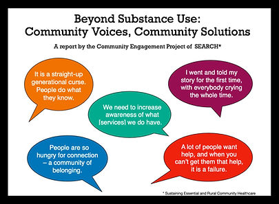 In July 2022, the Community Engagement Project (CEP) of SEARCH initiated listening sessions on substance misuse in both Yancey and Mitchell counties. The work was funded by the AMY Wellness Foundation and the Z. Smith Reynolds Foundation. The following report provides a narrative of lived experiences and our conclusions based on the listening sessions that were held.